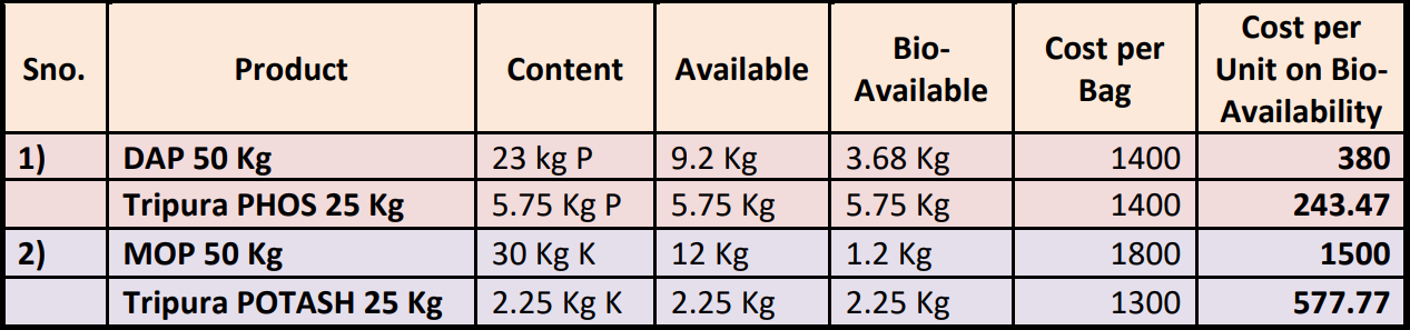 1 bag of Tripura Phos 25 bag can easily replace 1 bag of DAP 50 kg.